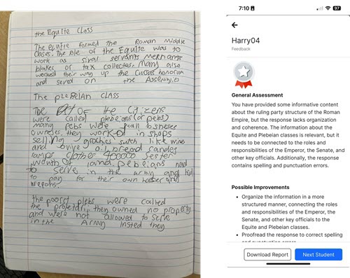Students have feedback in seconds, teachers have new insights and reduced work. Writing improves, and everyone wins.