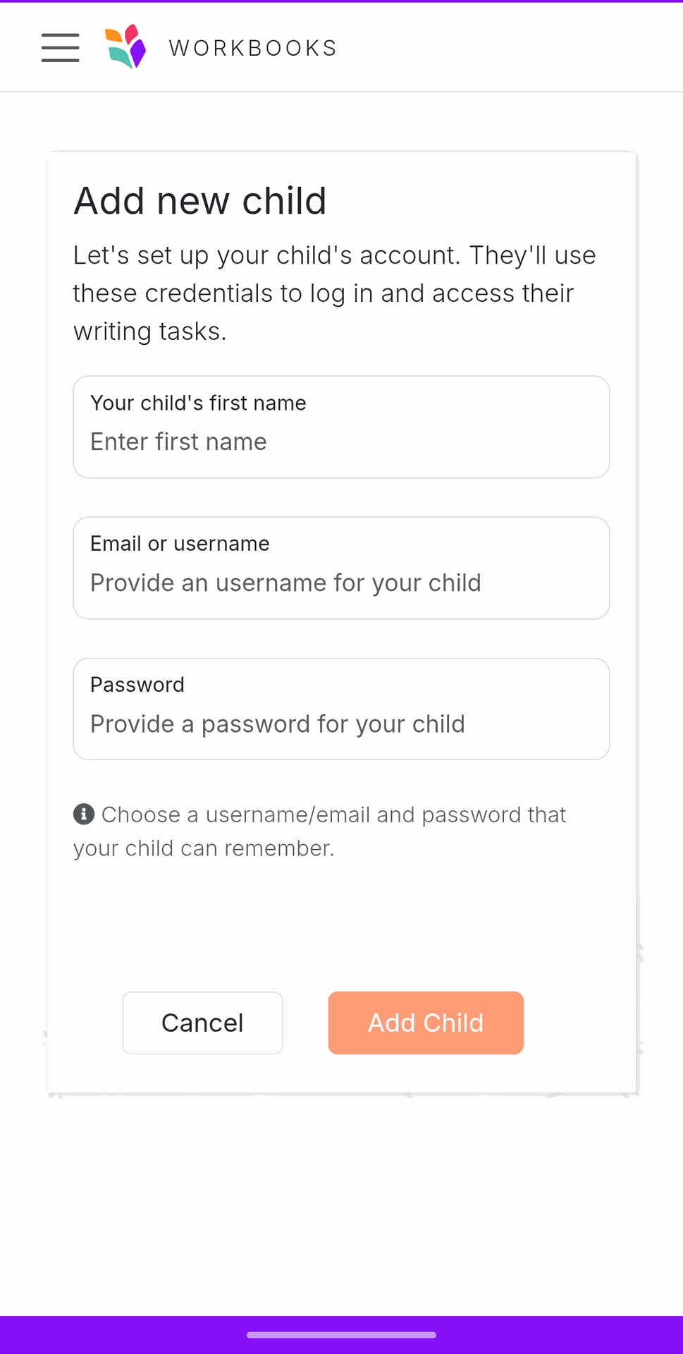 2. You can choose to use an email address for your child or any login name you like. e.g. Snookums123 . All user names must be unique.